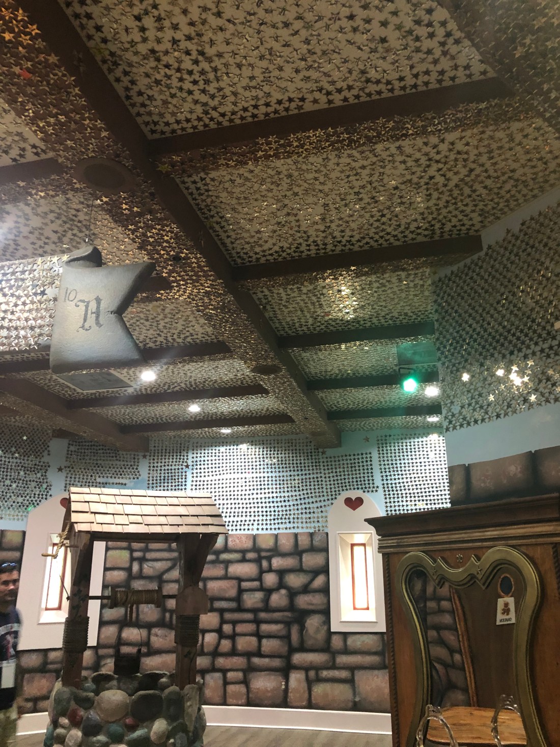 The Castle of Miracles is an appropriate name, as within its walls resides the name of every wish child who has been a guest of the Village. Each child, is given their star which they are asked to decorate with their name. That star is placed in a very special box, where Stellar, the Star Fairy, captures the star, using her fairy dust to hang it within the walls of the Castle of Miracles. The Star Tower, a turret with stars decorating its walls for more than three stories, is a beautiful artpiece of glittering gold stars swirling the walls. The stars have overflowed the tower, now filling the ceiling and walls of the main rooms of the castle as well. These stars will remain. They are a small representation of the children who are the stars of the Village, who will be remembered as special miracles for all time.