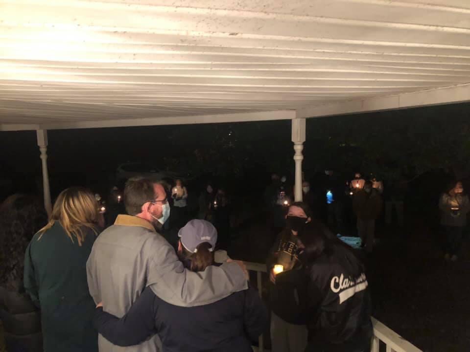 The next night, we stood on the porch of our home wrapped in the love and prayers of our community. We looked into the dark night to a sea of candles burning as our faith community prayed the four corners of our home. Each candle ignited in me the strength that could only come from a higher source and supported by a family of people who would lift our elbows when we grew weary. As cancer was attempting to steal our peace, the Prince of Peace opened His storehouses and revived us. The elders of our church anointed Jonesy with oil and prayed over him. In the midst of COVID, Jonesy stood on the porch and people came to him offering him love and prayers. We would sleep the night wrapped in that love, awaking the next morning to go to the hospital for surgery, staging and a plan.